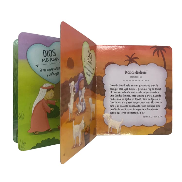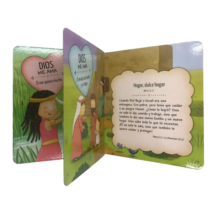 La Biblia Dios me ama, contiene 18 relatos bíblicos minuciosamente seleccionados para difundir la maravillosa noticia del profundo amor de Dios por sus hijos.
